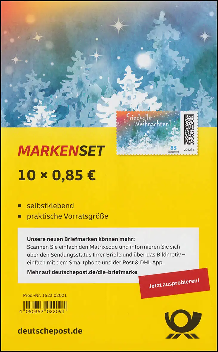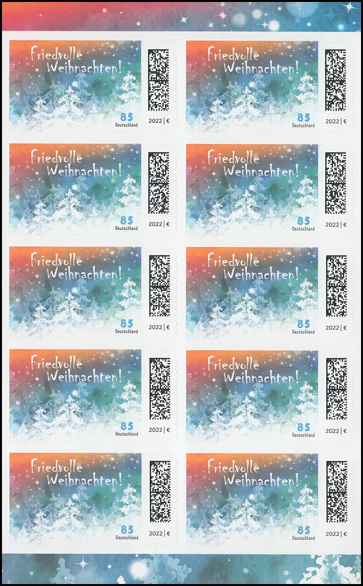 FB 122 Friedvolle Weihnachten 2022, Folienblatt 10x 3730, **