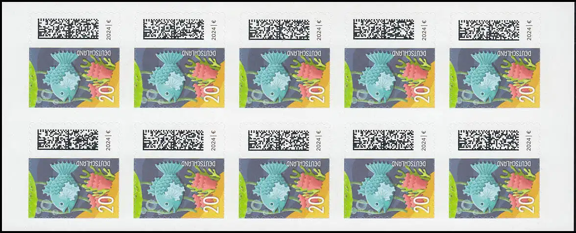 FB 139 Welt der Briefe Zackenbarsch 20 Cent, Folienblatt 10x3867, postfrisch **