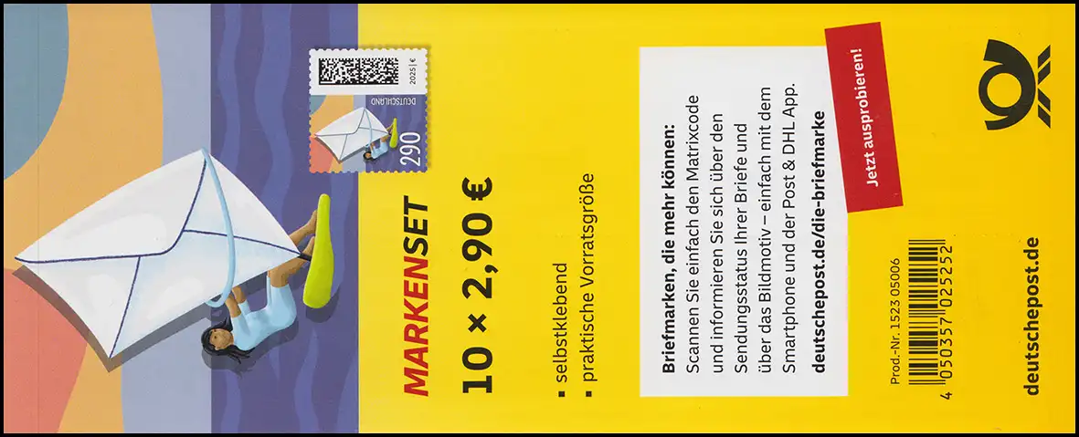 FB 145 Welt der Briefe Windsurfbrief 290 Cent, Folienblatt 10x3884 postfrisch **