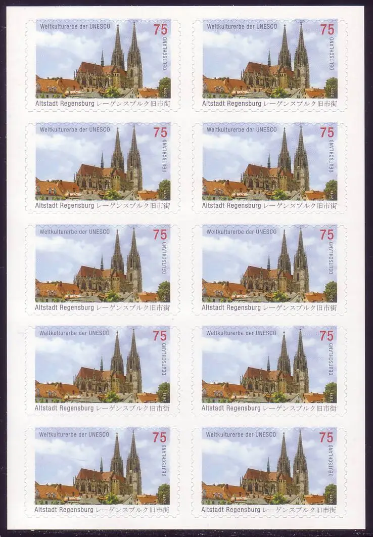 FB 14a UNESCO Regensburg, Folienblatt 10x2850 Nr. 162020111, **