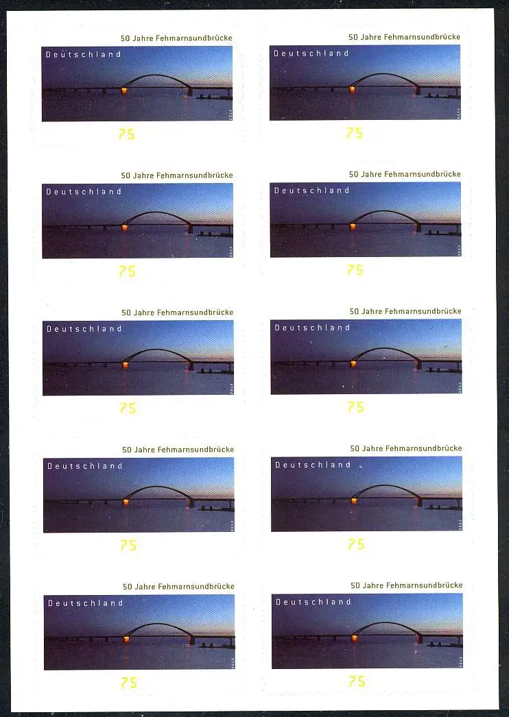 FB 29 Fehmarnsundbrücke, Folienblatt mit 10 x 3003, **