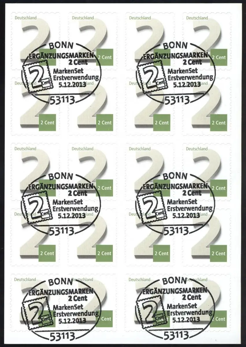 FB 34I Ergänzungsmarke 2 Cent, Folienblatt mit 20 x 3045, EV-O Bonn
