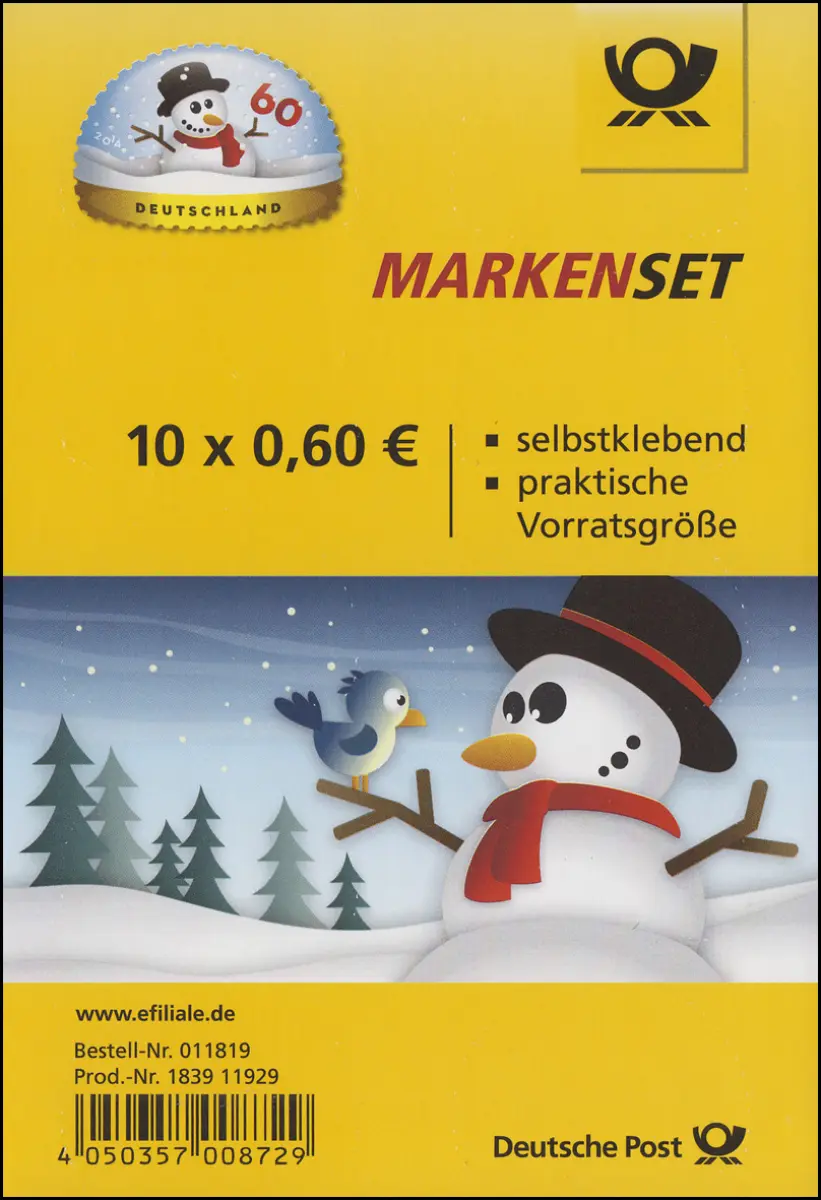 FB 41 Winter & Schneemann, Folienblatt mit 10x 3113, EV-O Bonn