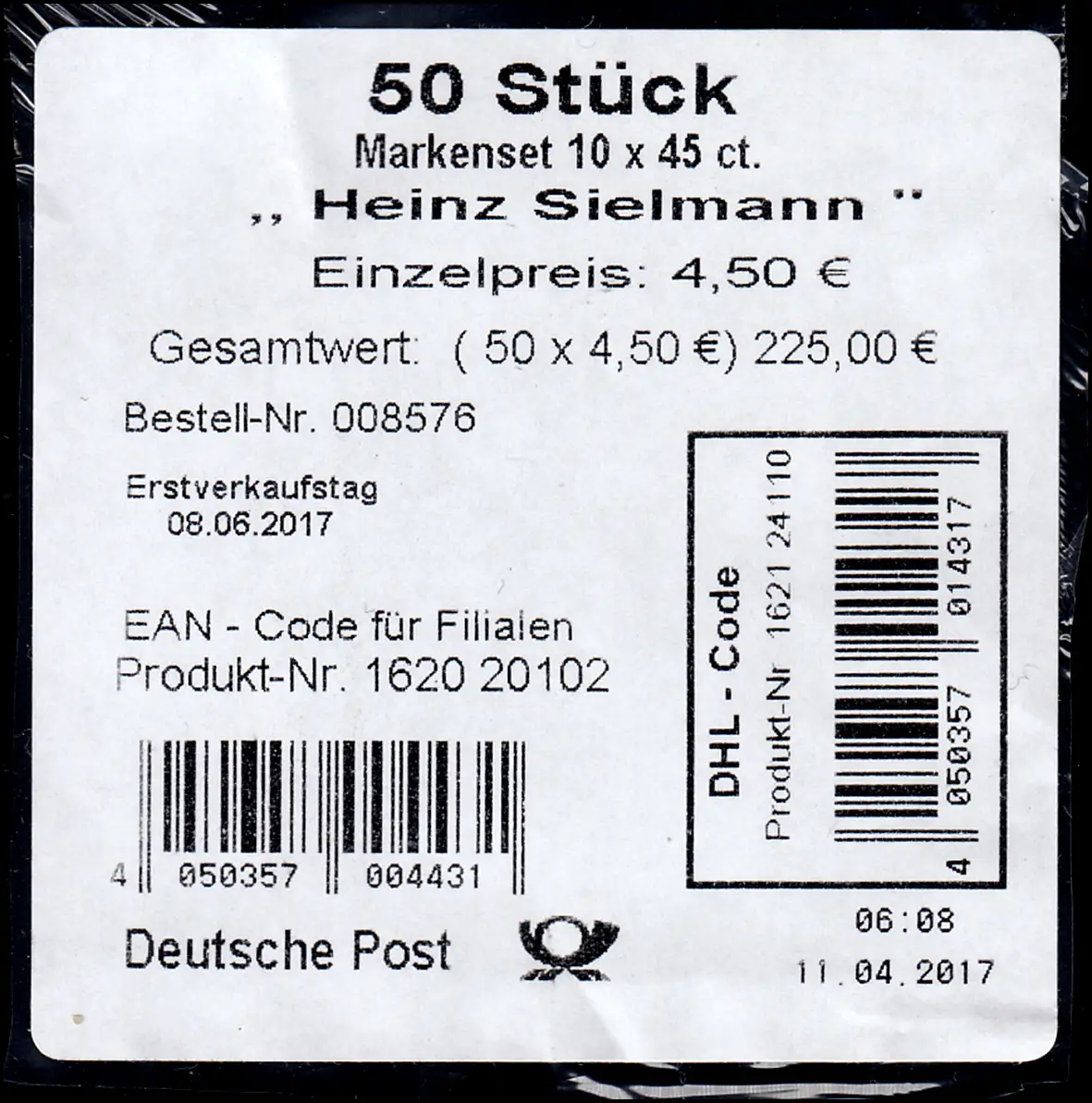 FB 69 Tierfilmer Heinz Sielmann, Folienblatt-BANDEROLE mit DHL-Code