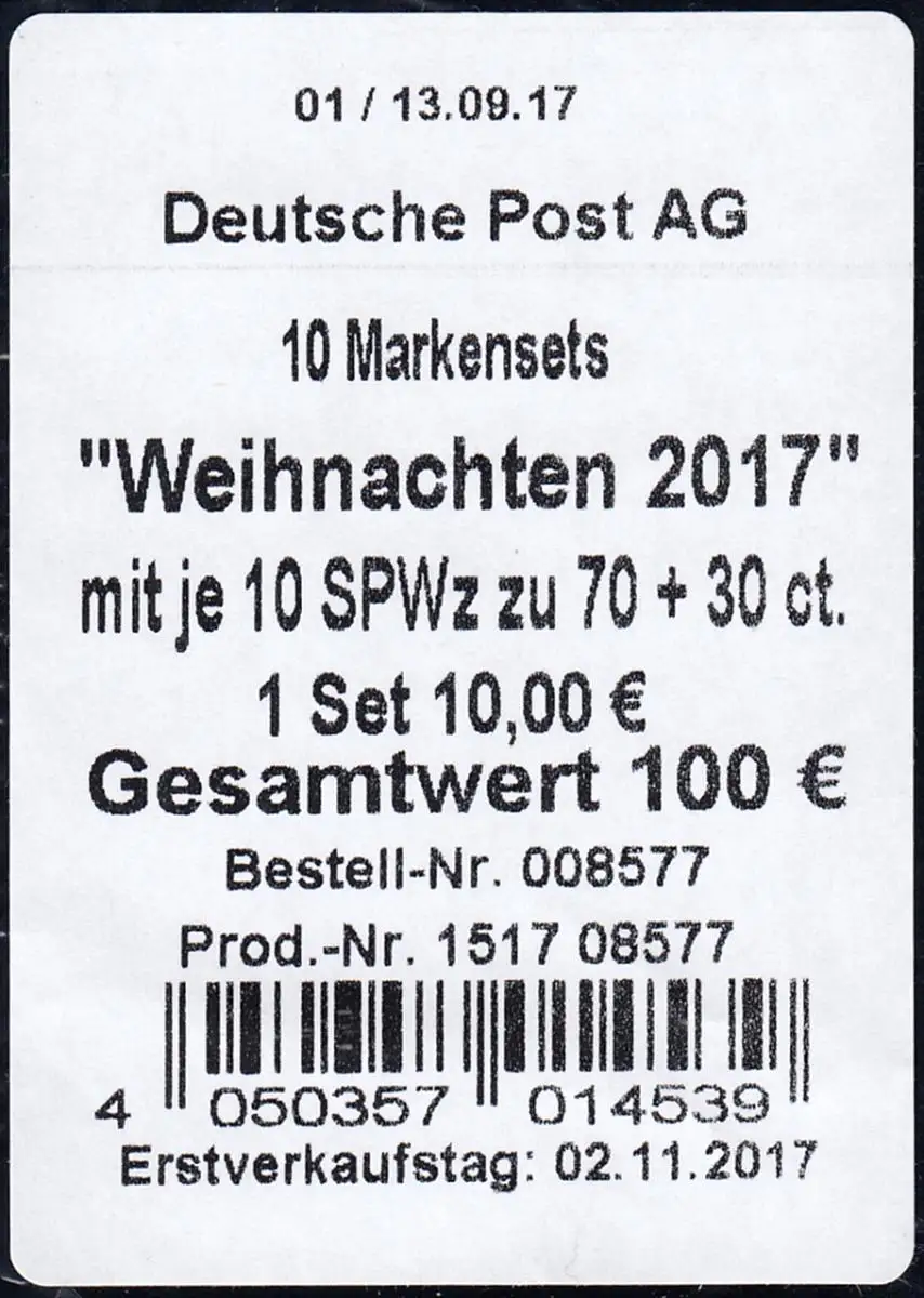 FB 70 Weihnachten 2017, Folienblatt-BANDEROLE