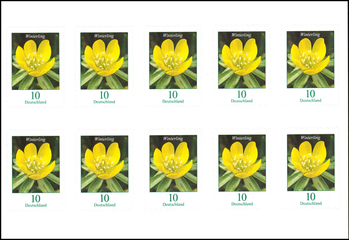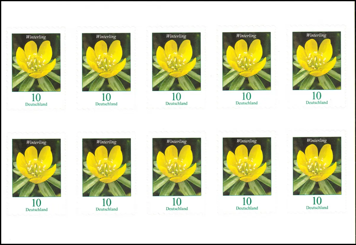 FB 81II Blume Winterling 10 Cent, Folienblatt mit 10x 3430II, postfrisch **