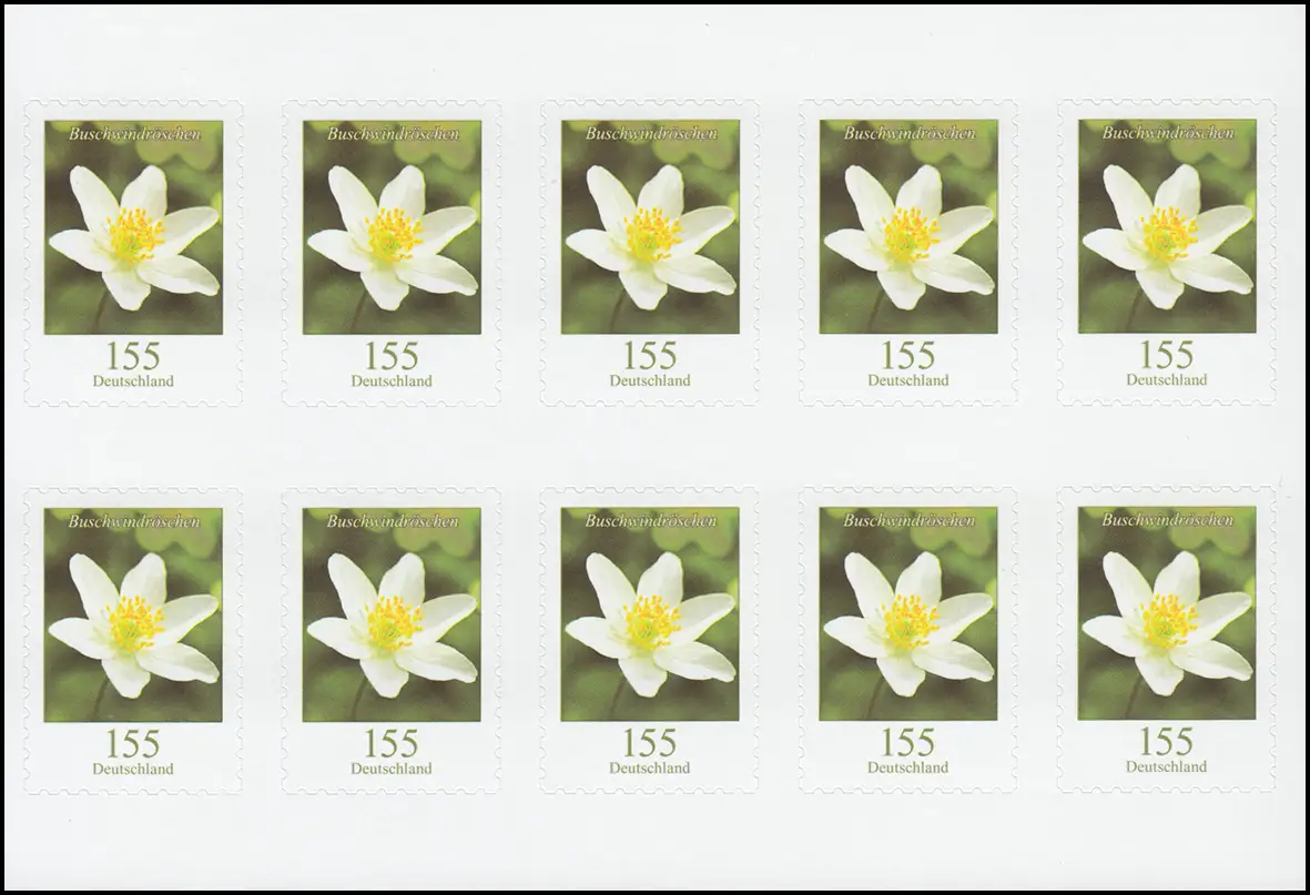 FB 91bI Buschwindröschen, Folienblatt ** (10 x 3484), Nr. -0151, ENGER Abstand