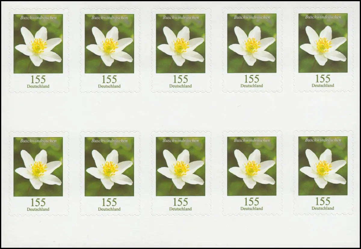 FB 91bII Buschwindröschen, Folienblatt ** (10 x 3484), Nr. -0151, WEITER Abstand