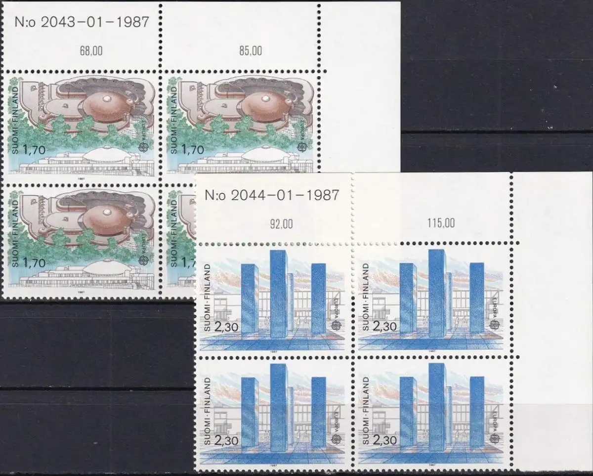FINNLAND 1987 Mi-Nr. 1021/22 ** MNH Eckrand-Viererblocks