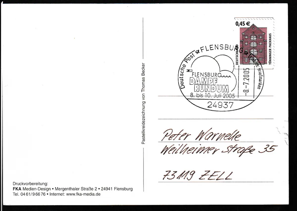FLENSBURG 24937 Deutsche Post Erlebnis Briefmarken FLENSBURG DAMPF RUND UM 8. bis 10.Jului 2005 8.7.2005 auf CAK (Flensburg unter Dampf)