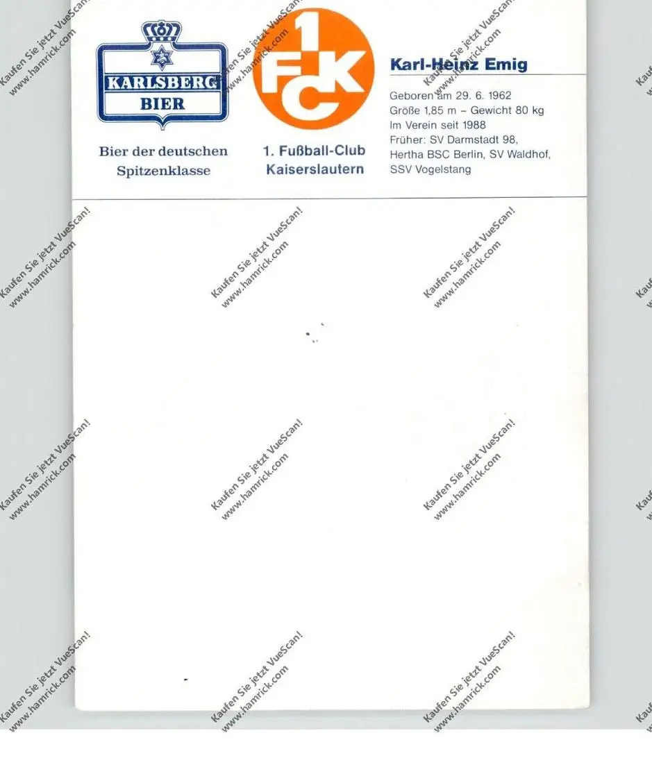 FUSSBALL - 1. FC KAISERSLAUTERN - KARL-HEINZ EMIG, Autogramm, Eckknick