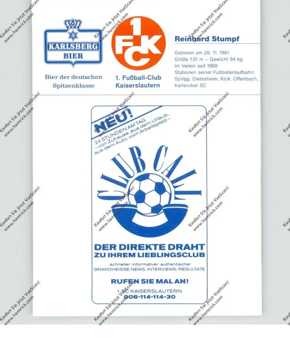 FUSSBALL - 1. FC KAISERSLAUTERN - REINHARD STUMPF, Autogramm