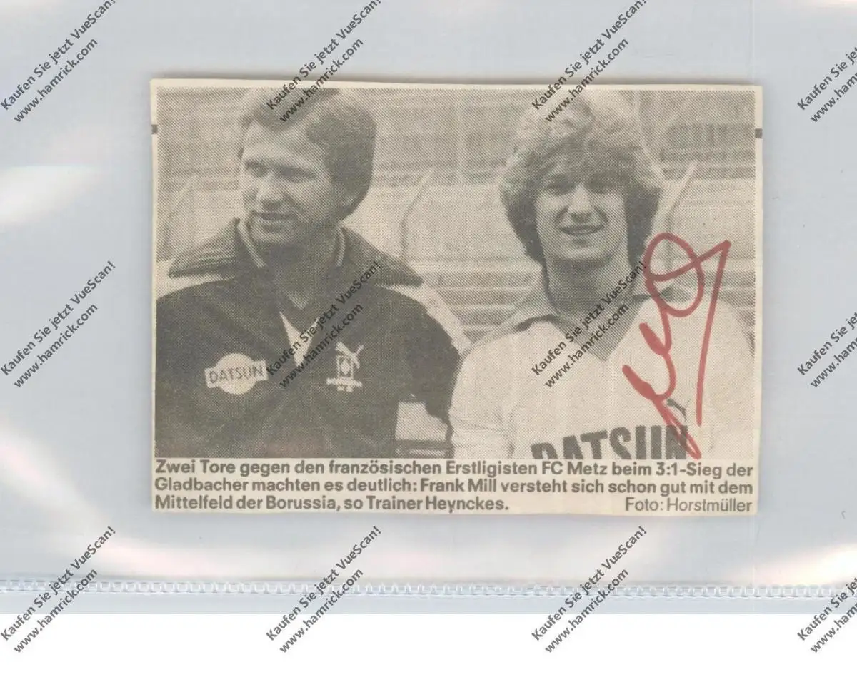 FUSSBALL - BORUSSIA MÖNCHENGLADBACH - FRANK MILL, Autogramm auf Zeitungsausschnitt mit Jupp Heynckes