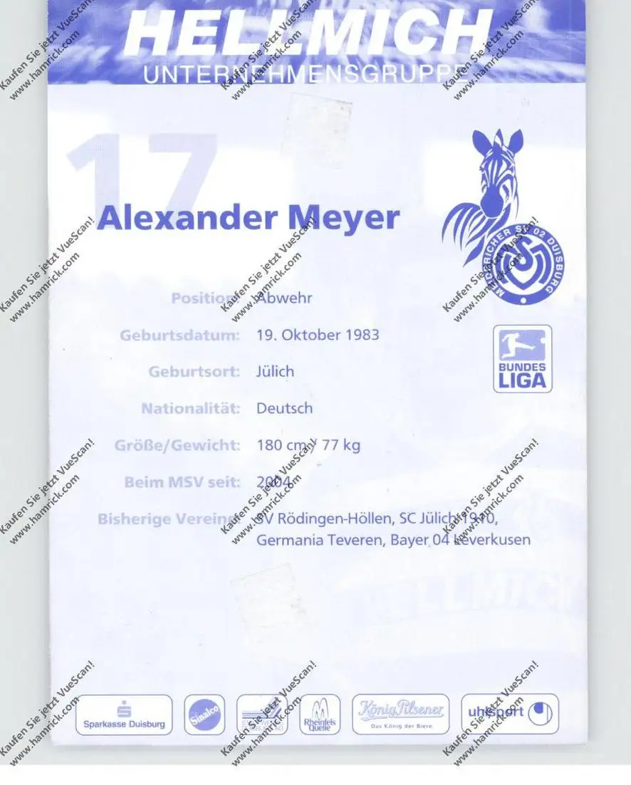 FUSSBALL - MSV DUISBURG - ALEXANDER MEYER, Autogramm