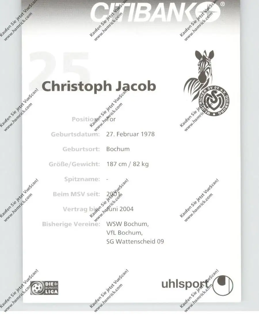 FUSSBALL - MSV DUISBURG - CHRISTOPH JACOB, Autogramm