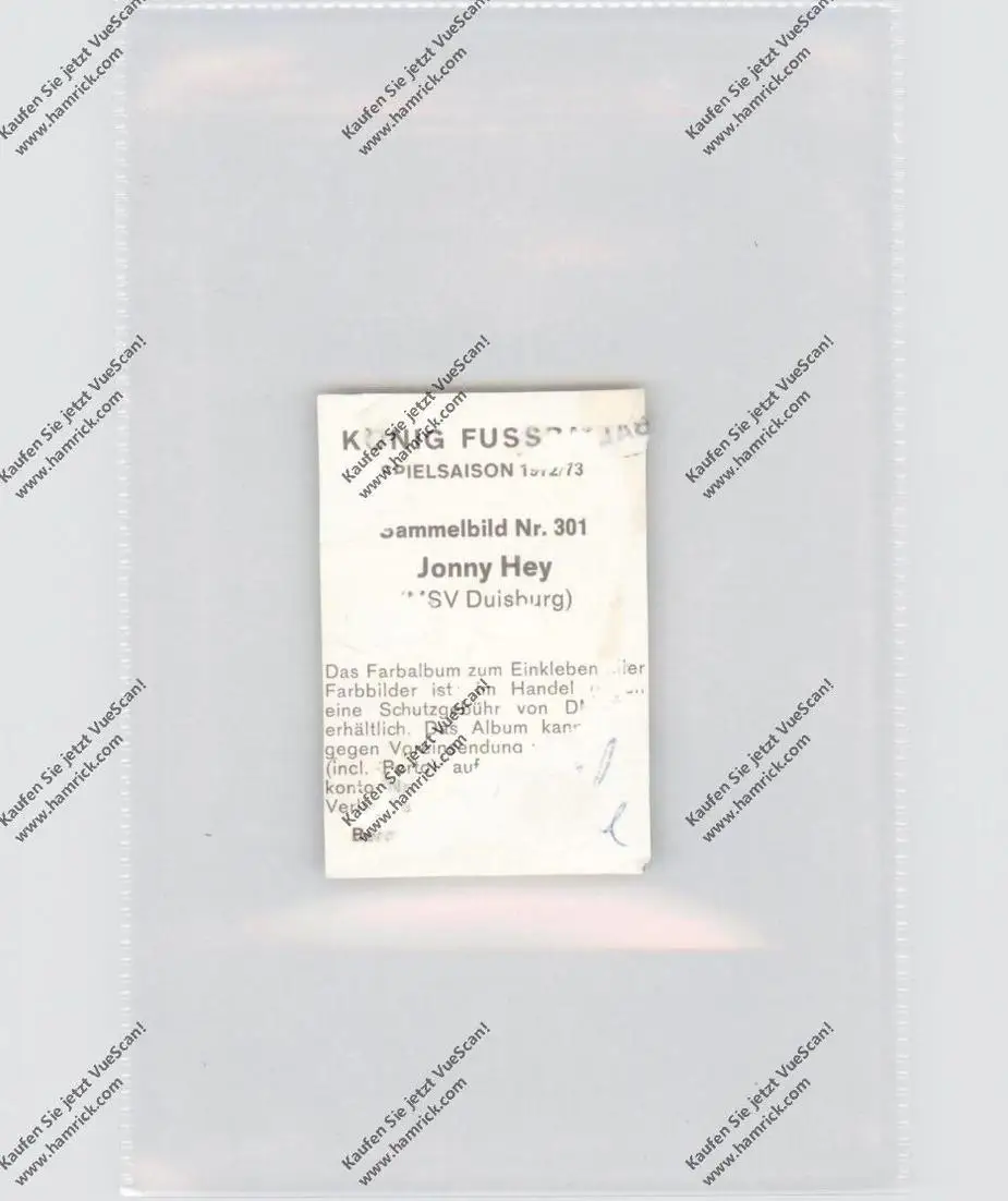 FUSSBALL - MSV DUISBURG - JONNY HEY, Autogramm