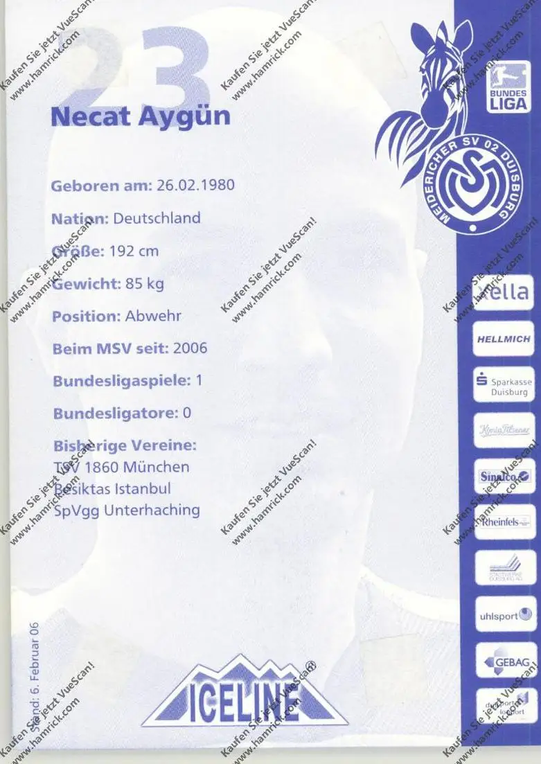 FUSSBALL - MSV DUISBURG - NECAT AYGÜN, Autogramm