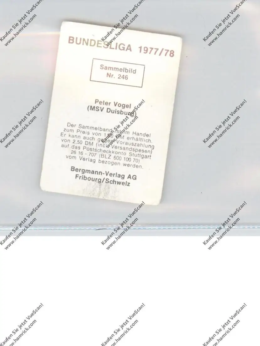 FUSSBALL - MSV DUISBURG - PETER VOGEL, Autogramm