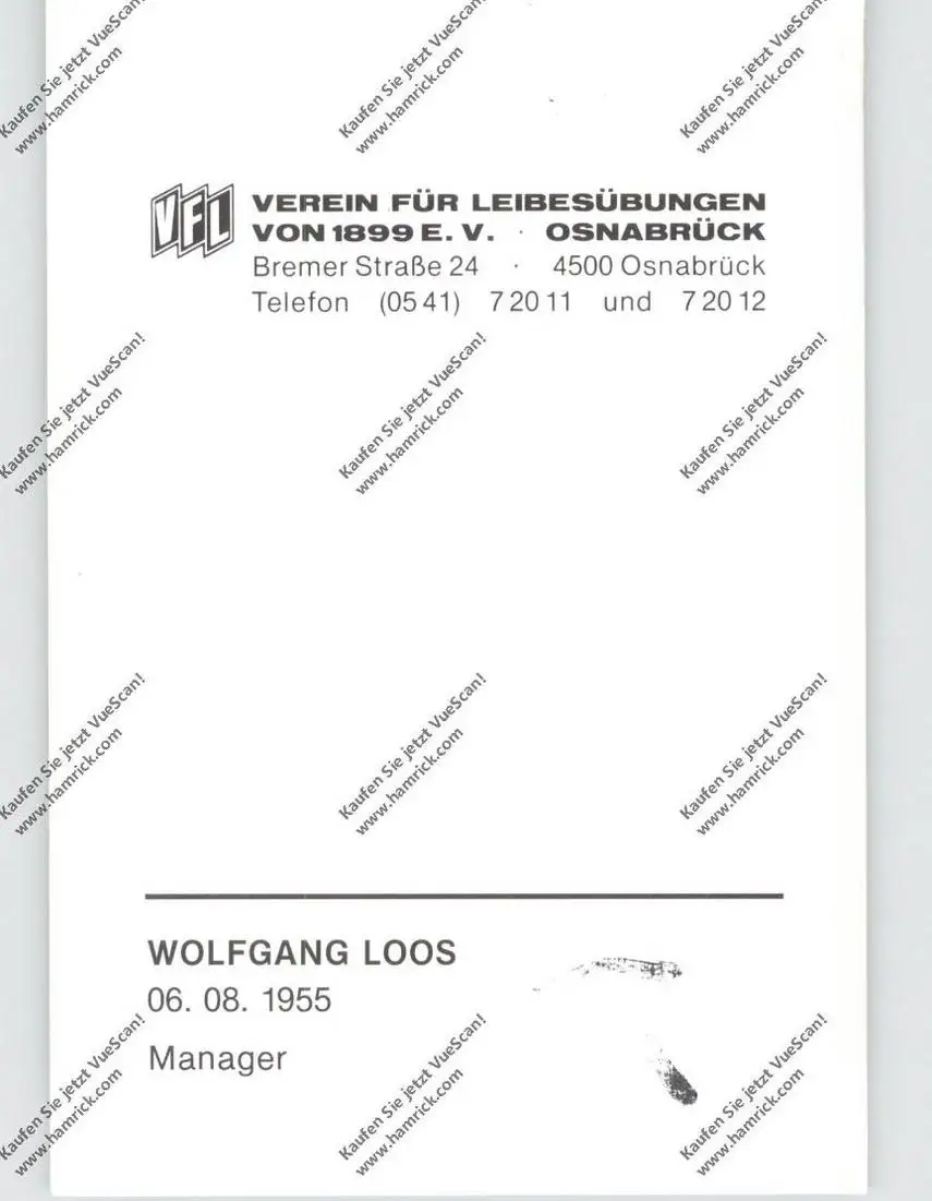FUSSBALL - VfL OSNABRÜCK, WOLFGANG LOOS, Autogramm