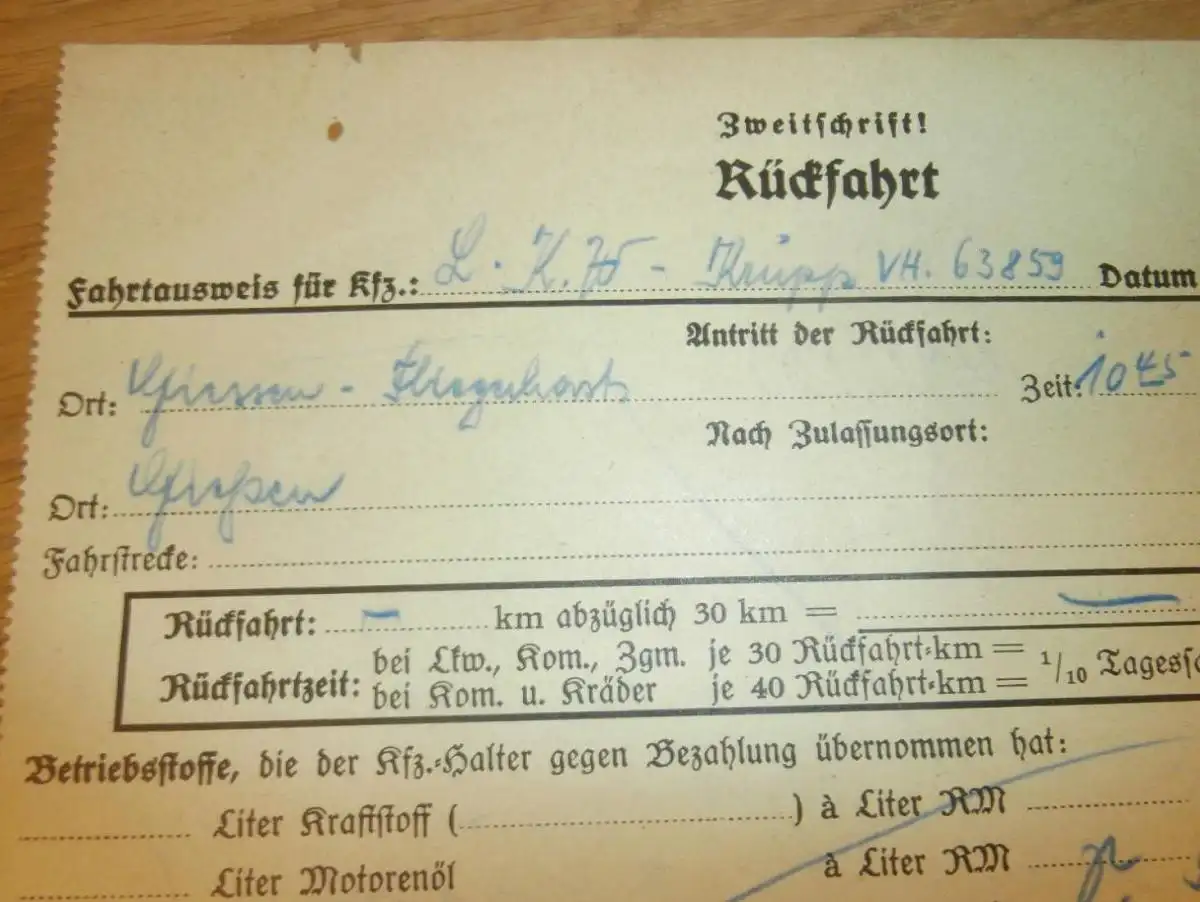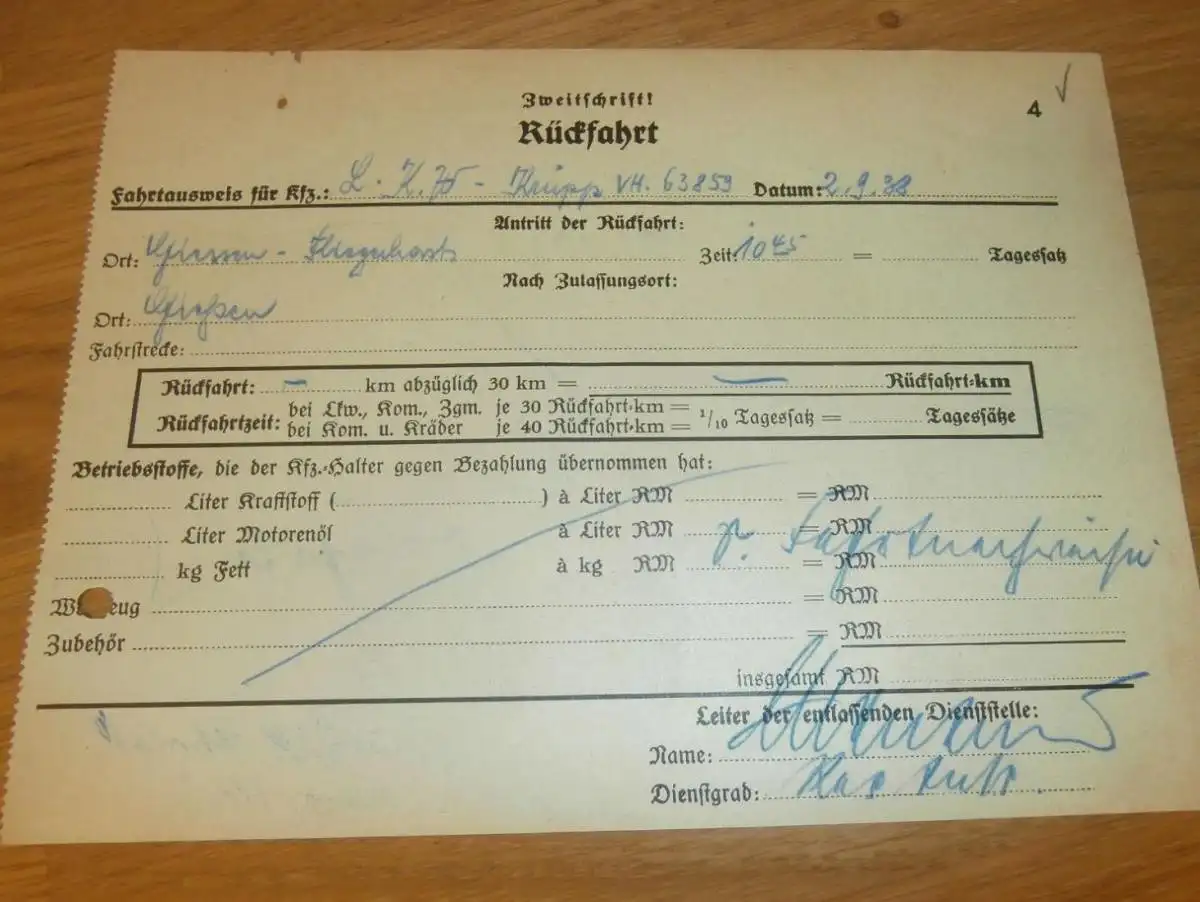 Fahrtausweis - Fliegerhorst in Gießen , 1938 , altes Dokument / Rechnung , Reklame / Werbung , Giessen