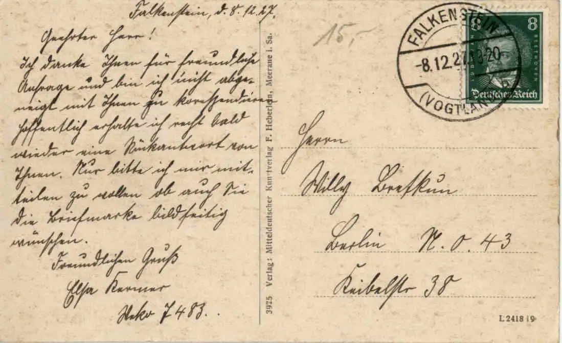 Danke. Alles Bestens. Können Sie mir allenfalls mitteilen, aus welchem Jahr die Postkarte stammt? Besten Dank.