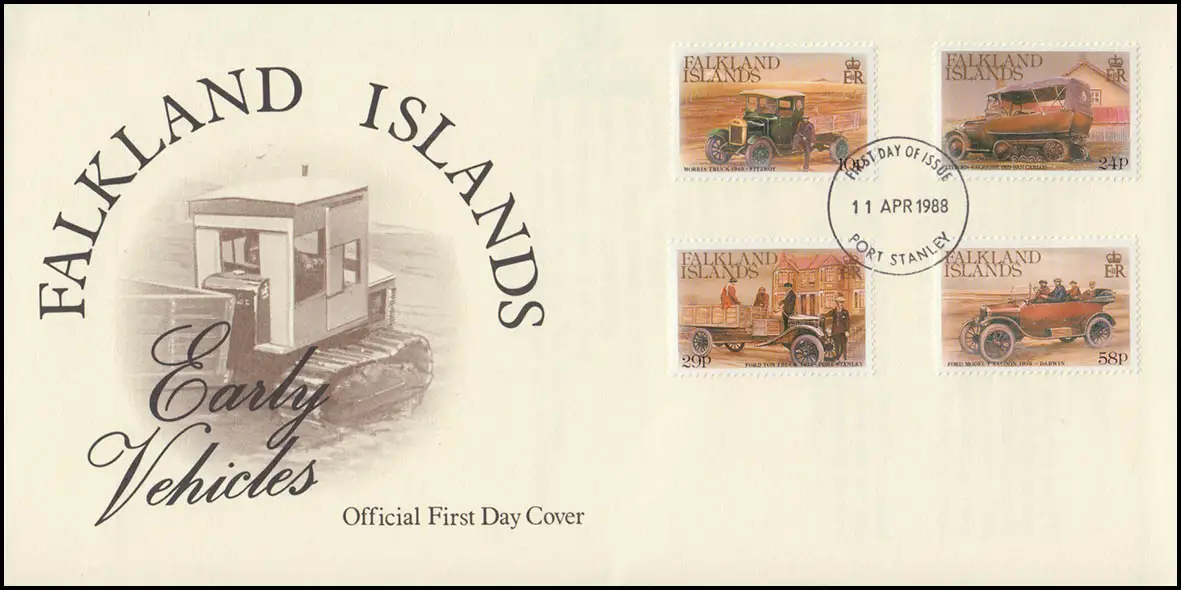 Falklandinseln 476-479 Oldtimer Autos auf FDC