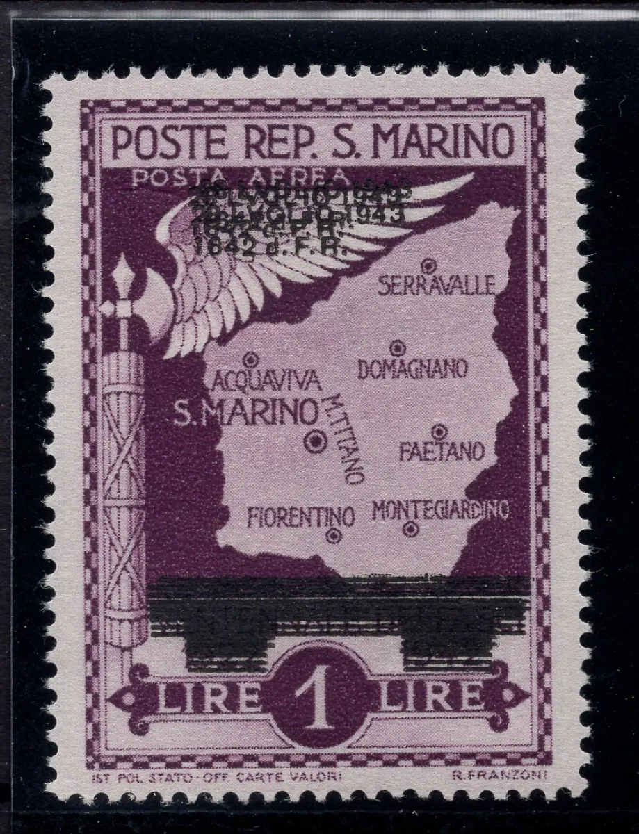 MNH - Vollgummi - Fall des Faschismus Luftpost Lire 1 Nr. A37ed Paar mit gut sichtbarem Schrägaufdruck, neuer perfekter Vollgummi - Selten, auffällig und unterbewertet - Kat. euro 60 Cod. 3121/WEB