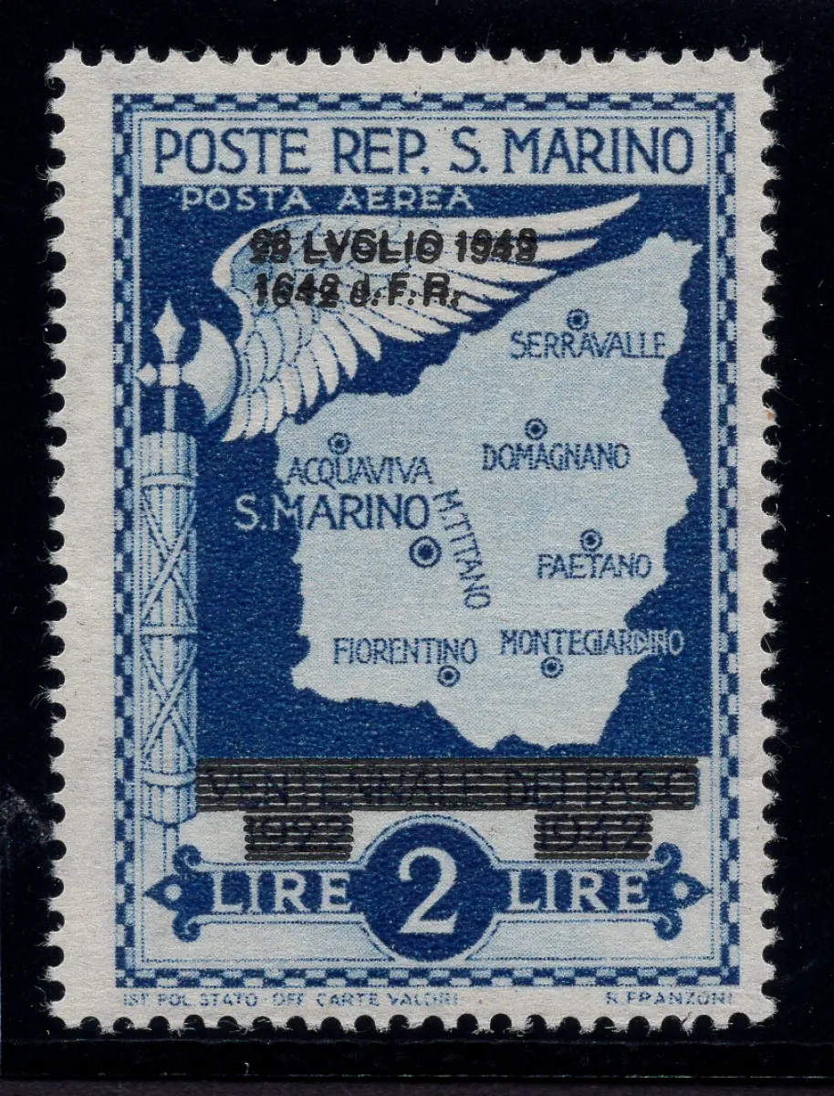MNH - Vollgummi - Fall des Faschismus Luftpost Lire 2 Nr. A38a doppelter Überdruck überlagert, aber gut sichtbar, neuer perfekter Vollgummi - Kat. euro 65 Cod. 3122/WEB