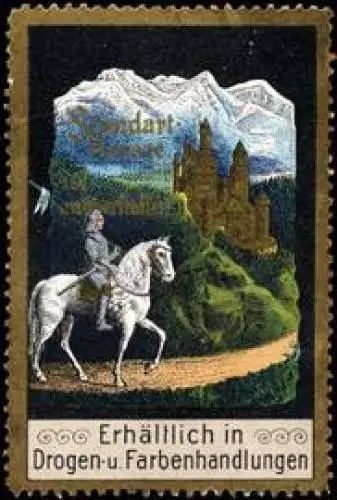erhältlich in Drogen - und Farbenhandlungen, Schloss Neuschwanstein, Größe/Zustand: 6x4 , guter Zustand, Original alte Reklamemarke die seinerzeit für die Werbung benutzt wurde
