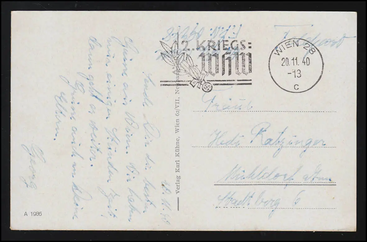 Farbfoto AK Europa Österreich Blick auf den Stephansturm Feldpost WIEN 20.11.40