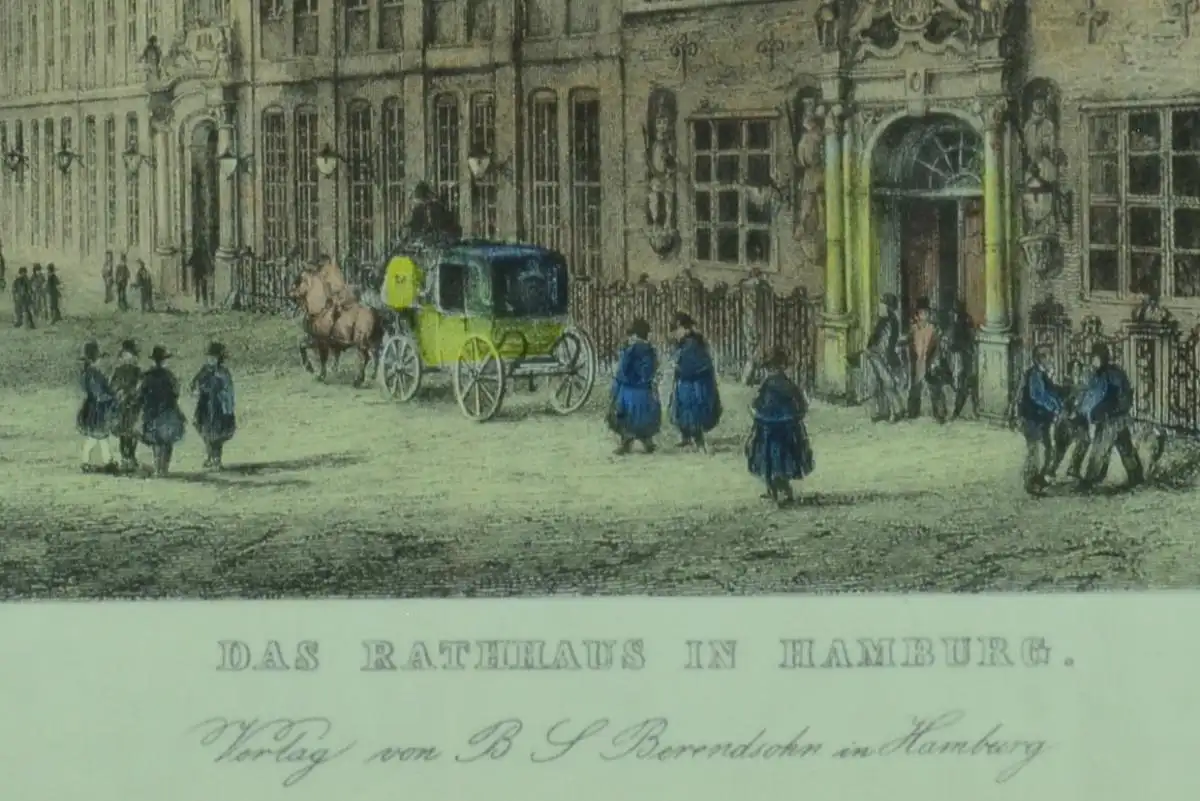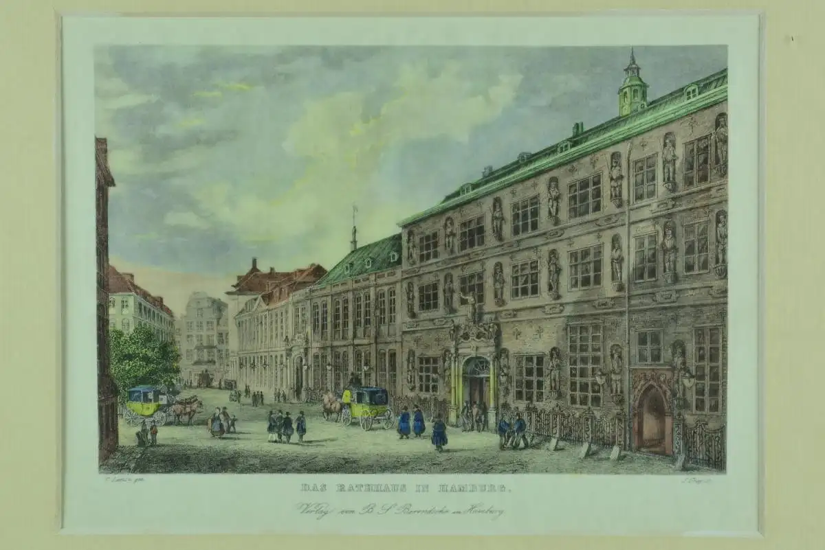 Farbstahlstich,James, Gray,Carl, Martin, Laeisz,Rathaus, Hamburg,Verlag, Berendsohn,Sammlerstück,historische, Kunst,dekorative