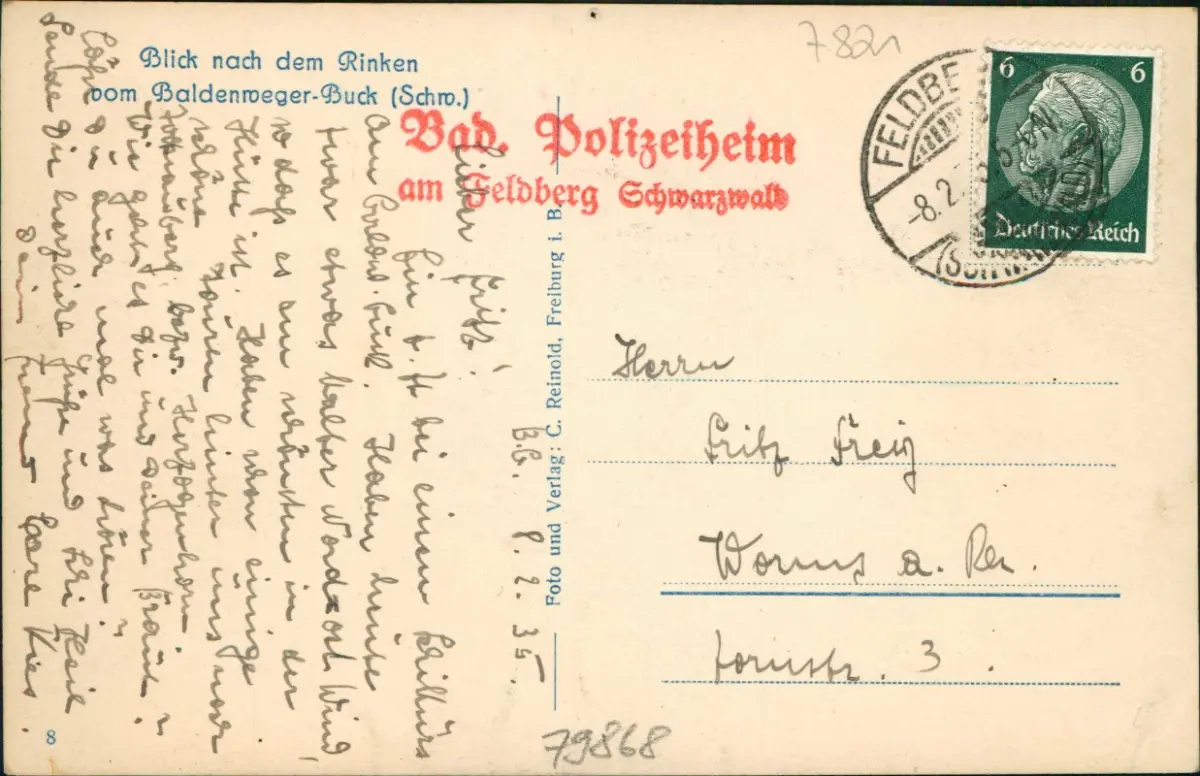 Feldberg (Schwarzwald) Winter Baldenweger Buck - Blick nach dem Rinken 1935