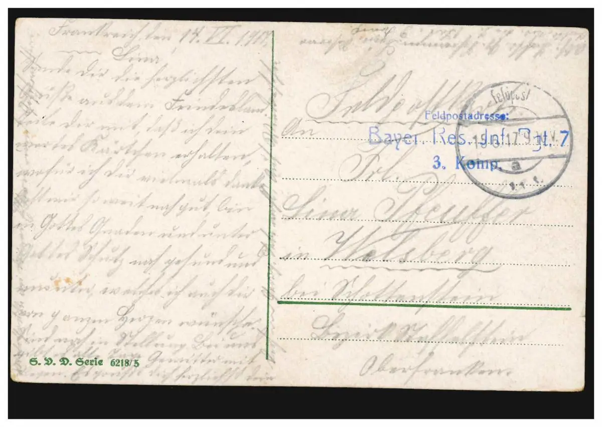 Feldpost BS Bayer. Reserve-Infanterie-Regiment 7, 15.6.17 auf AK Der Liebesbrief