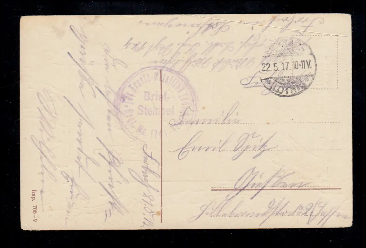 Feldpost BS Ersatz-Batl. Inf.-Regt. 174 Reserve-Depost FORBACH (LOTH.) 22.5.1917