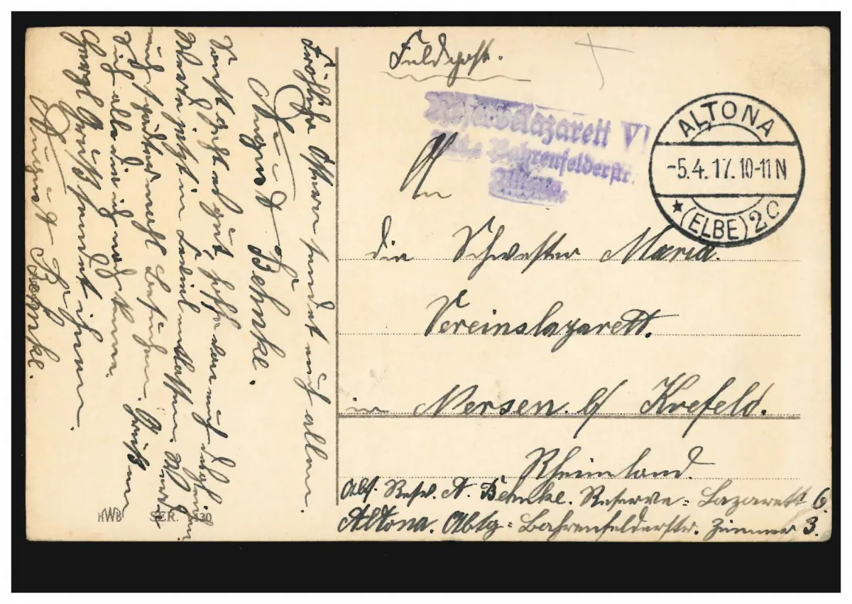 Feldpost BS Reservelazarett VI - Abt. Behrenfelderstraße ALTONA 54.4.1917 af Ak