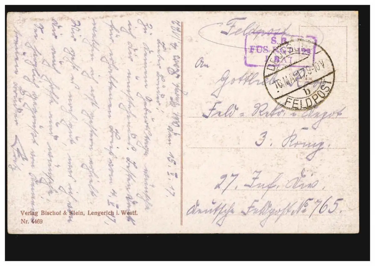 Feldpost BS S.B. FÜS-RGT. 122 AK Christus mit Psalm 4 Mos. 6,24 FELDPOST 16.5.17