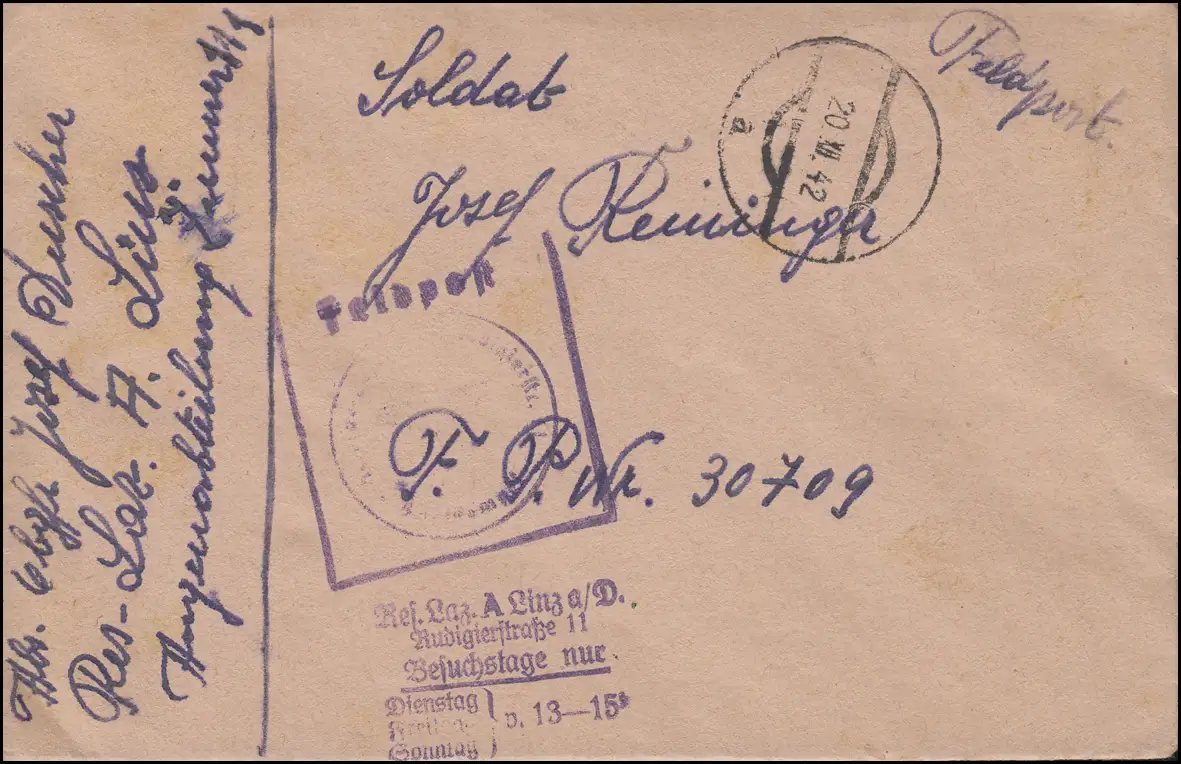 Feldpost BS mit Absenderstempel Reserve Lazarett Linz, Bf Tarnstempel 20.12.1942