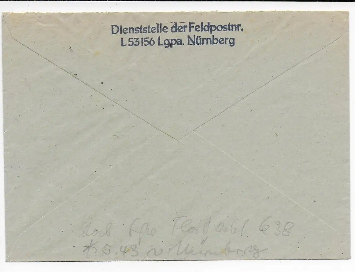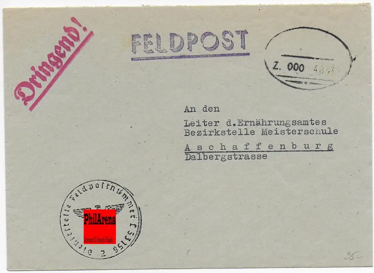 Feldpost: Bahnpoststempel 1943 aptiert, FPNr. L53156 nach Aschaffenburg Dringend