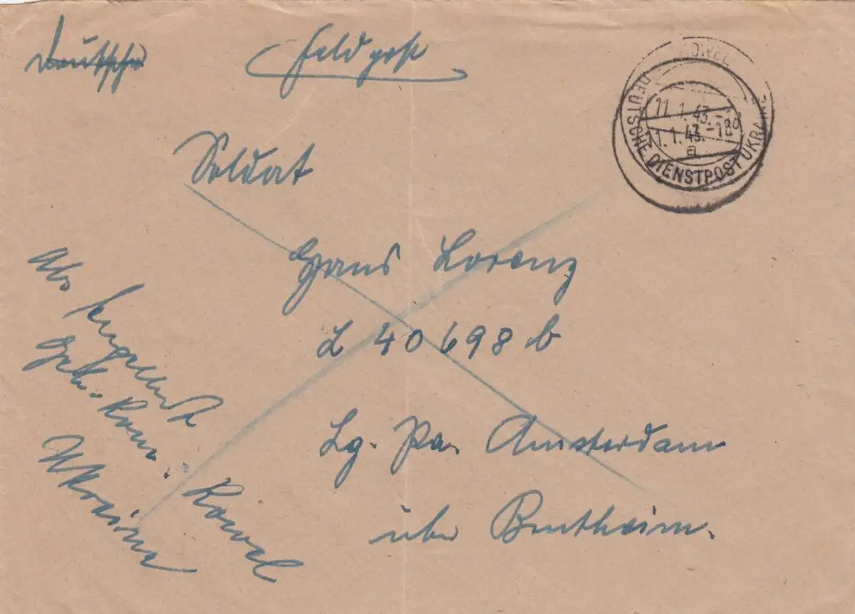 Feldpost Brief Deutsche Dienstpost Ukraine 1943 an L40698b, Amsterdam