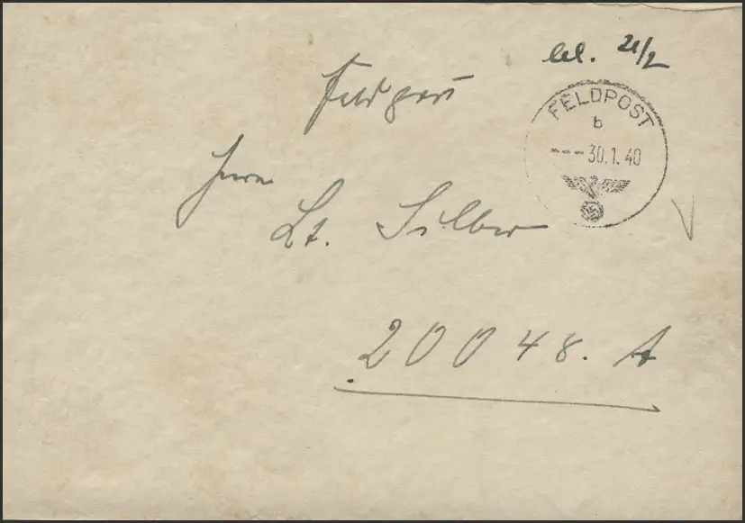 Feldpost-Brief Postfach 20017 Feldpost b 30.1.1940 zum Postfach 20048A