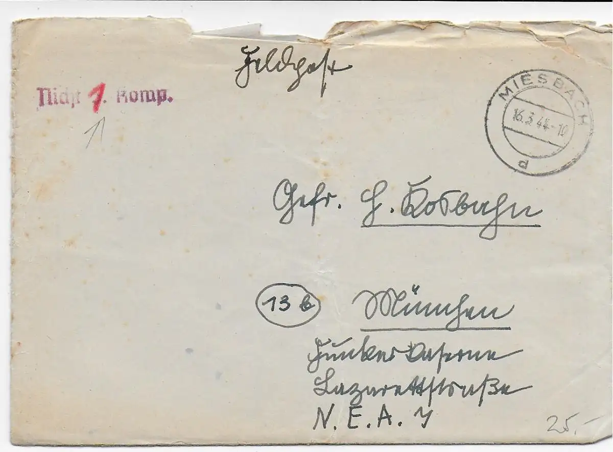 Feldpost: Brief aus Miesbach 1944 nach München - Funker Kaserne