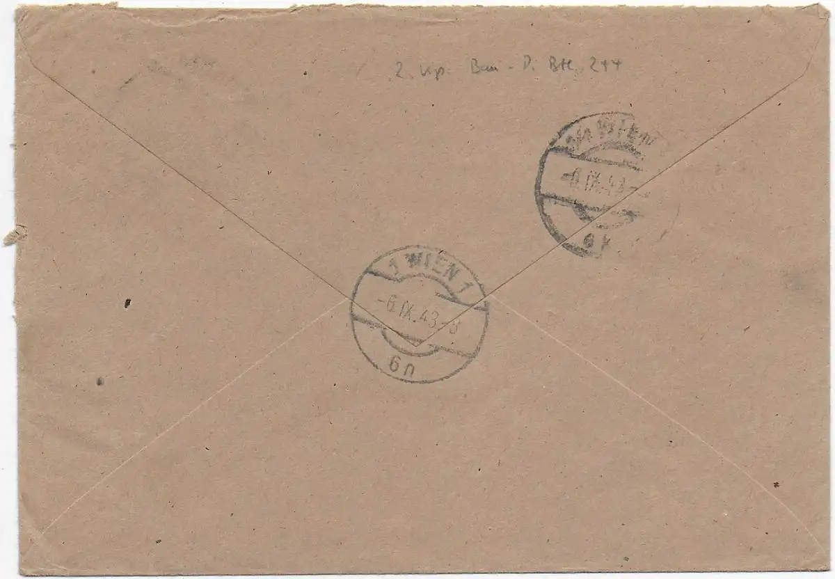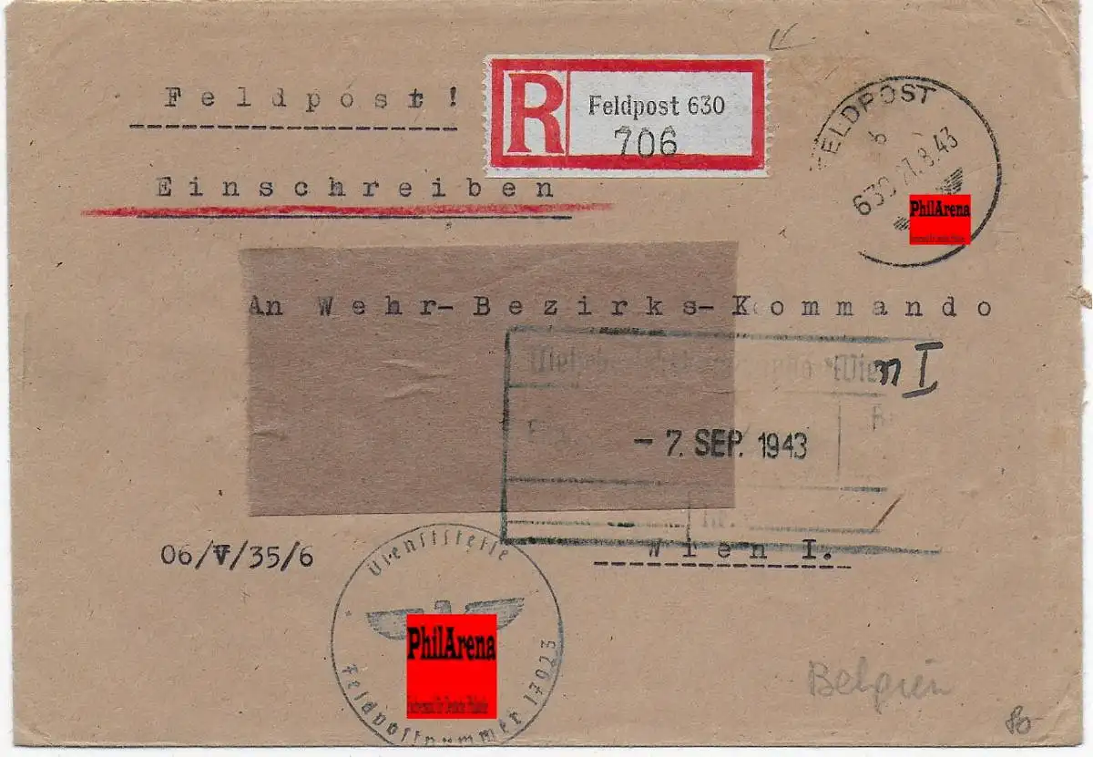 Feldpost: Einschreiben FPNr. 17923 von Belgien nach Wien, 1943