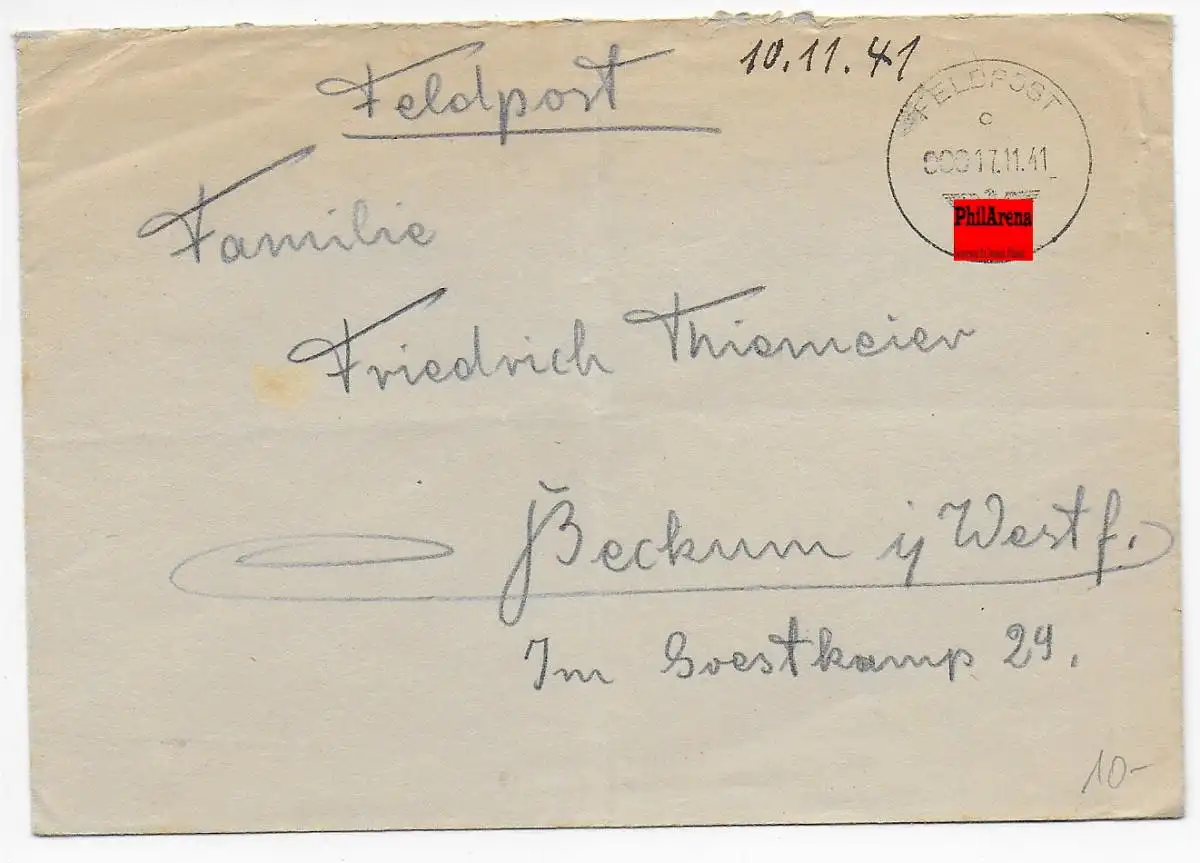 Feldpost: FPNr. 13344 nach Beckum 1941