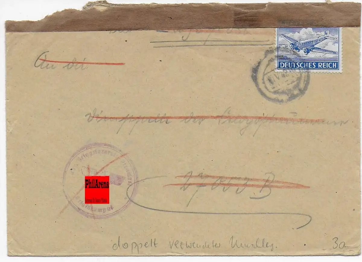 Feldpost: FPNr. 27053: Doppelt verwendeter Umschlag von 1942