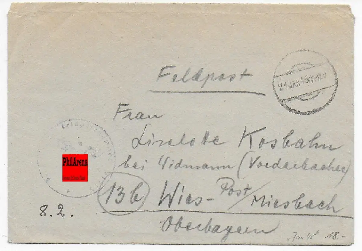 Feldpost: FPNr. 33565 vom 23.1.45 nach Wies-Miesbach
