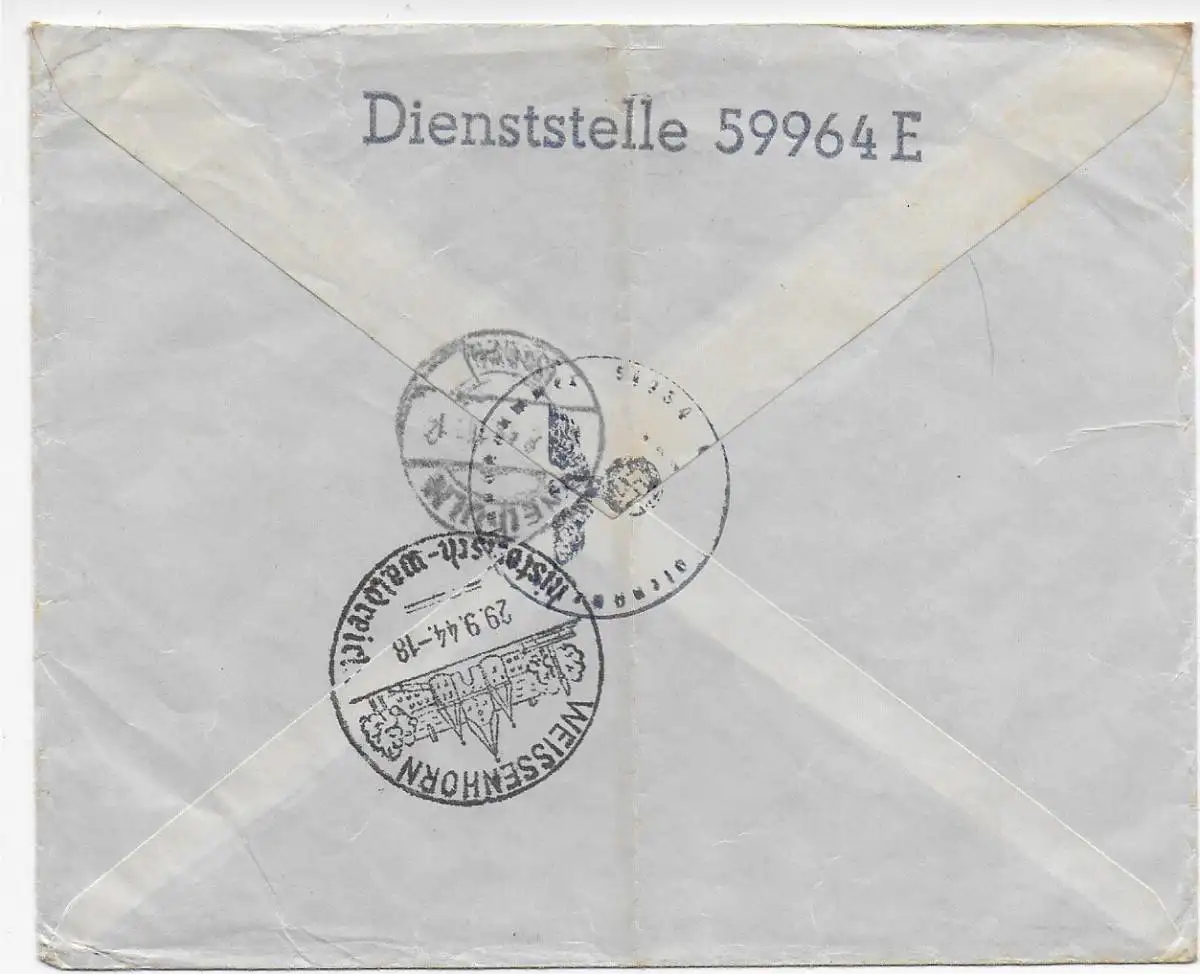 Feldpost: FPNr. 59964 als Einschreiben nach Weißenhorn 1944