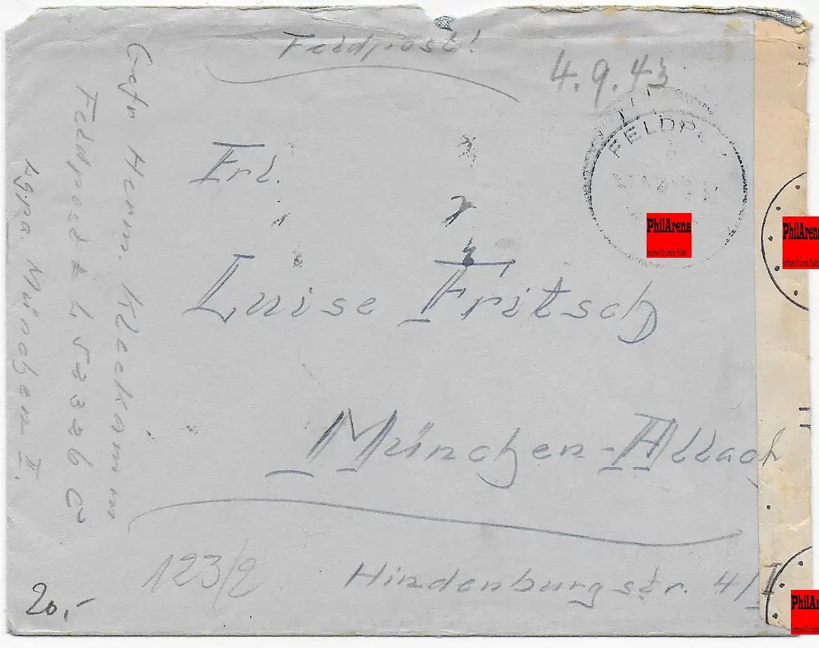 Feldpost: FPNr. L52326 München, 1943, Zensur: Feldpostprüfstelle