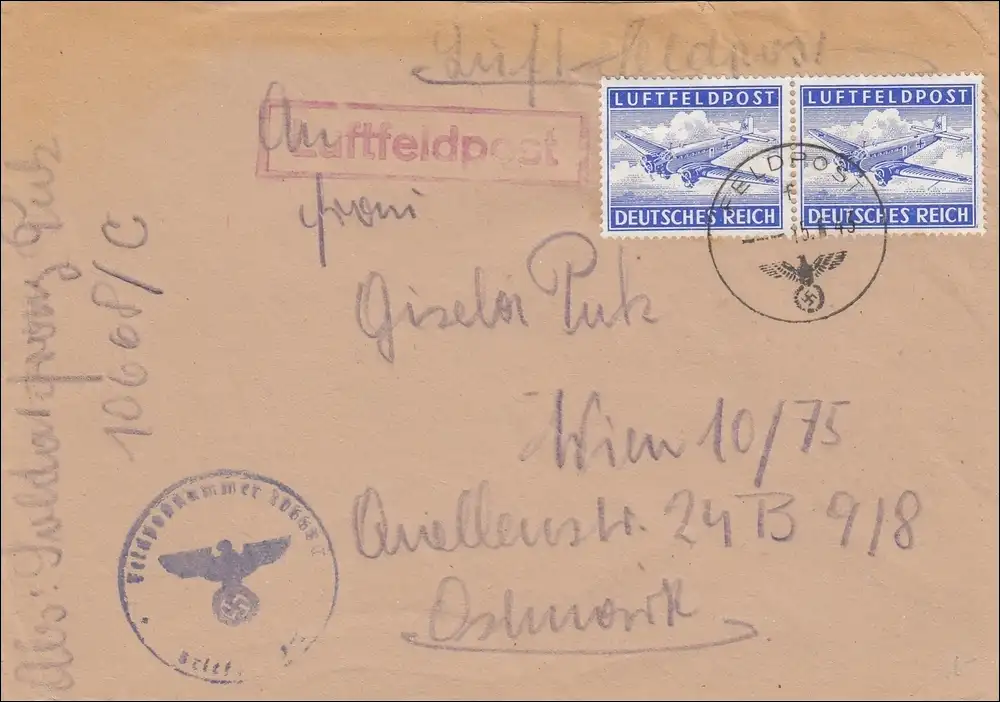 Feldpost II. Weltkrieg: Luftfeldpost Nr. 10608 nach Wien