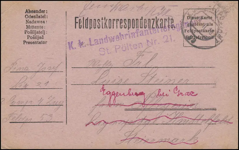 Feldpost Landwehrinfanterieregiment St. Pölten Nr. 21, K.u.K FELDPOST 5318.2.16