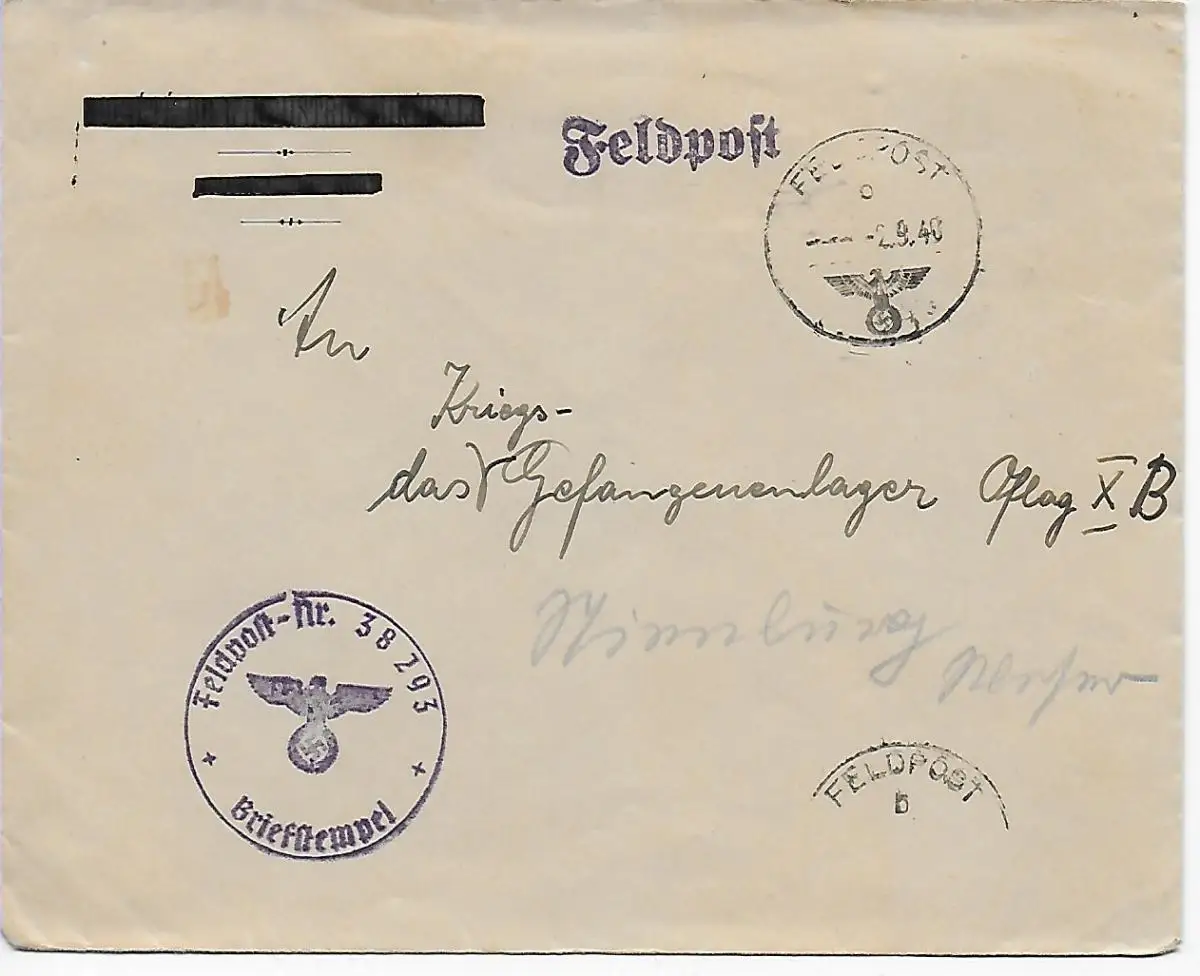 Feldpost Nr. 38293, 1940 an Kriegsgefangenlager Oflag XB, Nienburg